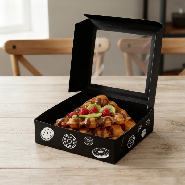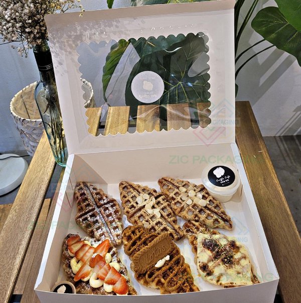 Both white cardstock and PET materials comply with food contact standards, ensuring safe and hygienic pastry packaging.