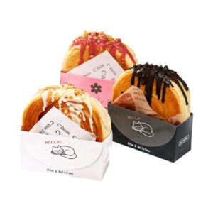 Custom Bagel Scoop Bakery Box for Round Croissants Foldable Logo Printed Waffle Sleeve Paper Mini Burger Churro Box Paper Sleeve