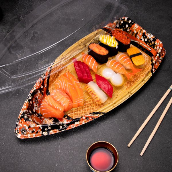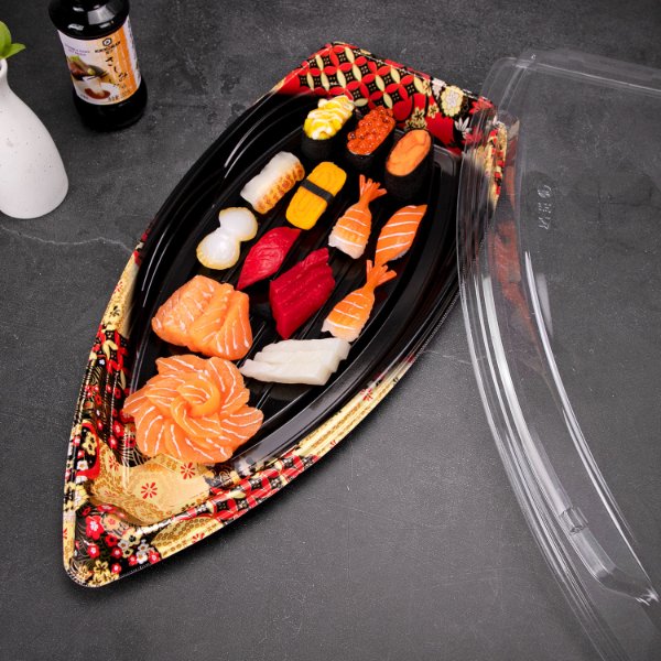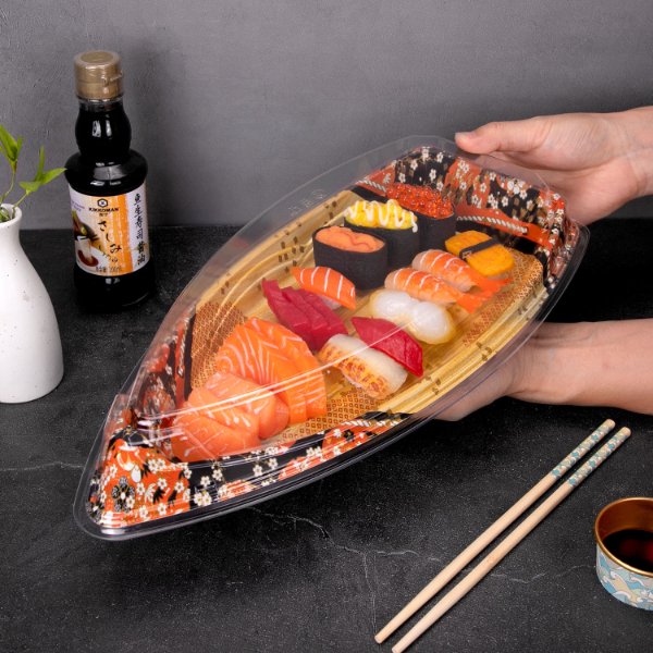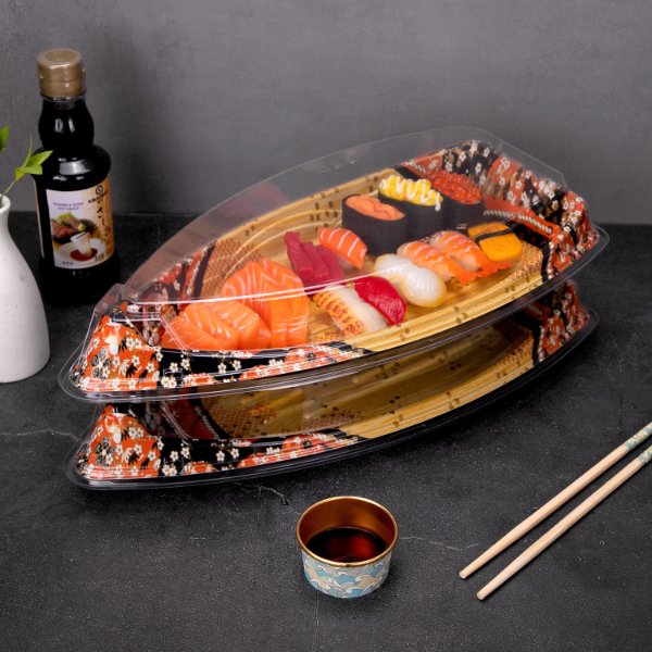 Large Capacity Sushi Box for Commercial Takeout, One-Time Use Salmon Sashimi Packaging Box with Lid